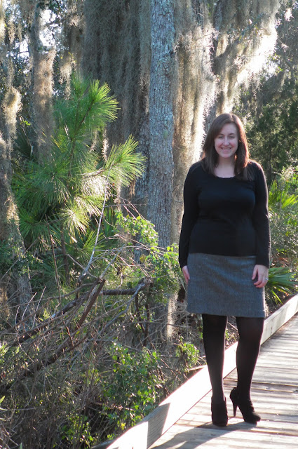 When the weather gets cooler in Florida, I jump at the chance to pull out my winter clothes. One evening the weather was cooler so I decided to wear my tweed and tights.